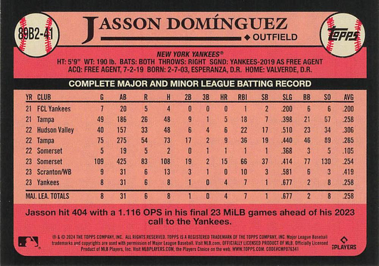 2024 Topps Series 2 1989 35th Anniversary Jasson Domínguez RC New York Yankees #89B2-41