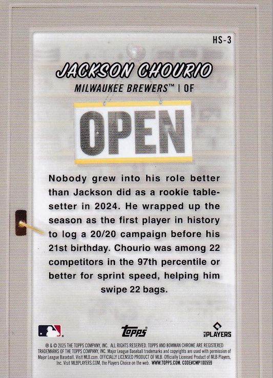 2025 Topps Bowman Hobby Stars Jackson Chourio Milwaukee Brewers #HS-3