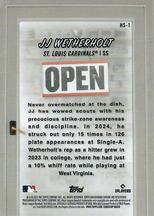 2025 Topps Bowman Hobby Stars JJ Wetherholt St Louis Cardinals #HS-1
