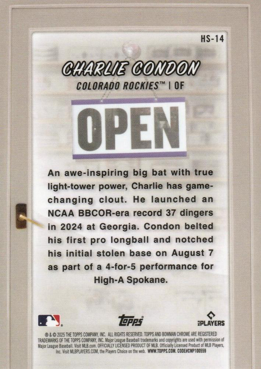 2025 Topps Bowman Hobby Stars Charlie Condon Colorado Rockies #HS-14