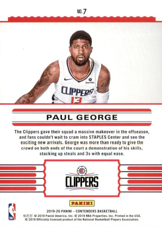 2019 Panini Contenders Front Row Seat Paul George #7 Los Angeles Clippers