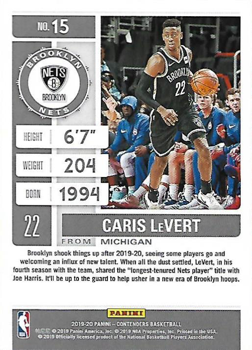 2019 Panini Contenders Caris LeVert #15 Brooklyn Nets
