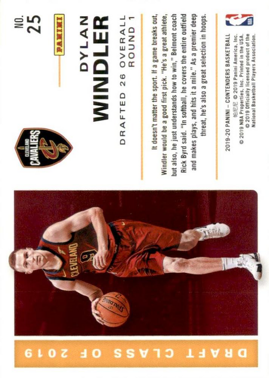 2019 Panini Contenders Draft Class Dylan Windler #25 Cleveland Cavaliers
