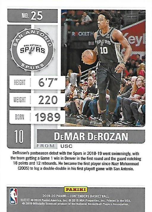 2019 Panini Contenders DeMar DeRozan #25 San Antonio Spurs