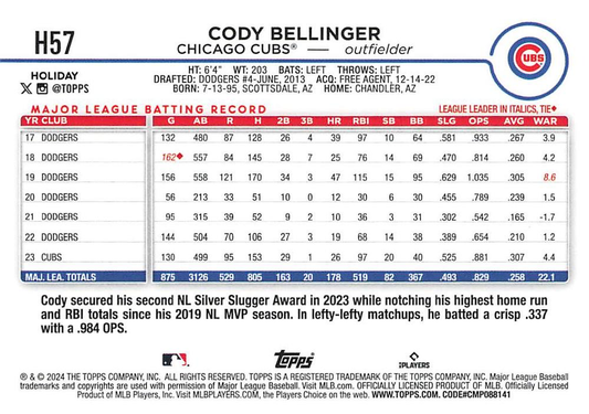 2024 Topps Holiday Cody Bellinger Chicago Cubs #H57