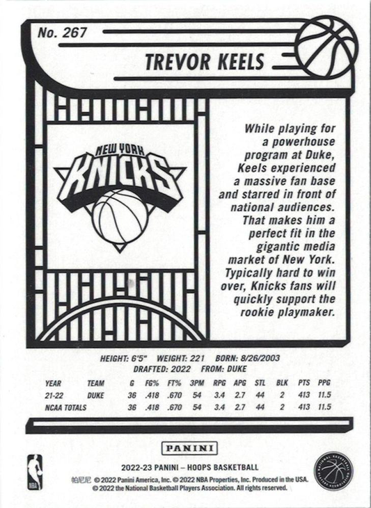 2022 Panini Hoops Trevor Keels RC #267 New York Knicks