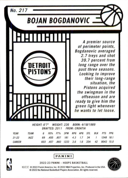 2022 Panini Hoops Bojan Bogdanovic #217 Detroit Pistons