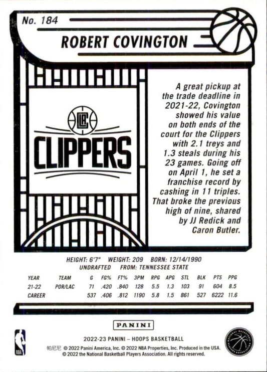 2022 Panini Hoops Robert Covington #184 Los Angeles Clippers