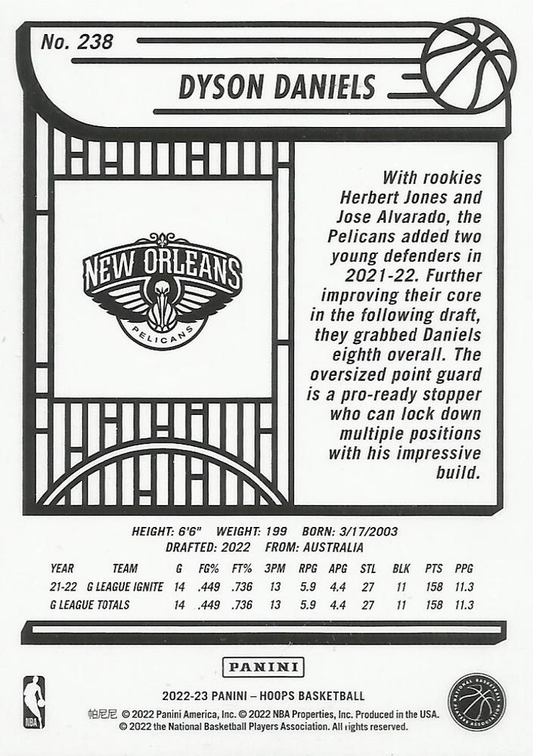 2022 Panini Hoops Dyson Daniels RC #238 New Orleans Pelicans