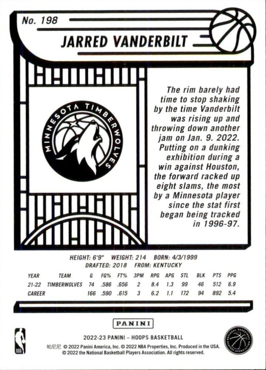 2022 Panini Hoops Jarred Vanderbilt #198 Minnesota Timberwolves
