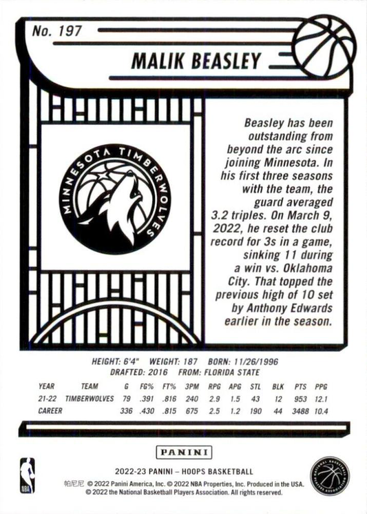 2022 Panini Hoops Malik Beasley #197 Minnesota Timberwolves