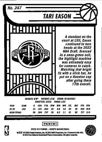 2022 Panini Hoops Tari Eason RC #247 Houston Rockets
