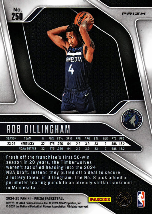 2024 Panini Prizm Pink Ice Cracked Rob Dillingham RC #250 Minnesota Timberwolves