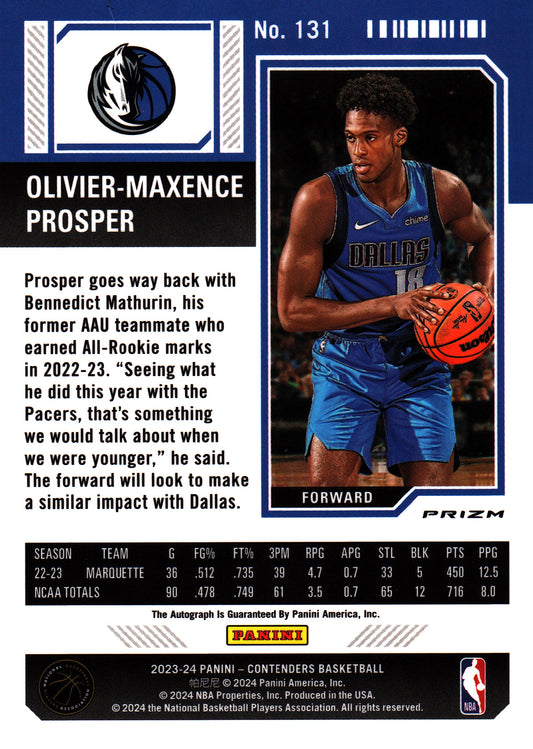 2023 Panini Contenders Optic RC Olivier-Maxence Prosper Autograph #131 Dallas Mavericks