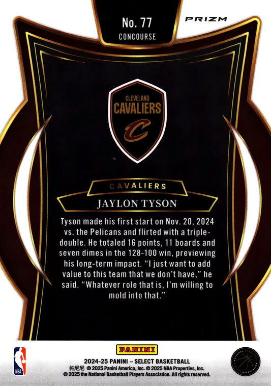 2024 Panini Select NBA Prizm Jaylon Tyson RC #77 Cleveland Cavaliers