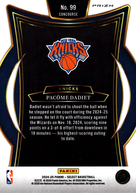 2024 Panini Select NBA Blue Prizm Concourse Pacome Dadiet RC #99 New York Knicks