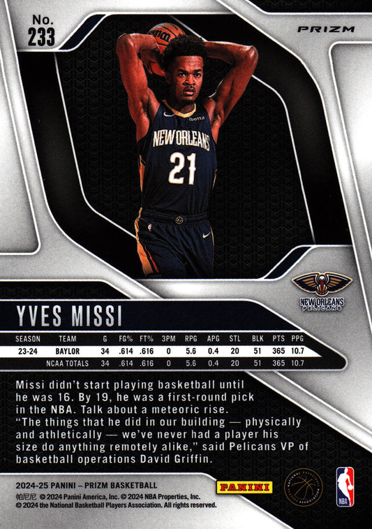 2024 Panini Prizm NBA Silver Yves Missi RC #233 New Orleans Pelicans
