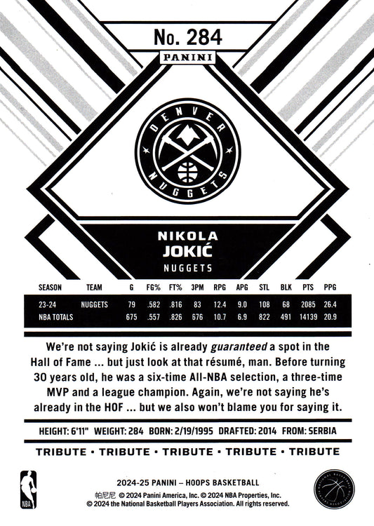 2024 Panini NBA Hoops Tribute Texture Nikola Jokic #284 Denver Nuggets