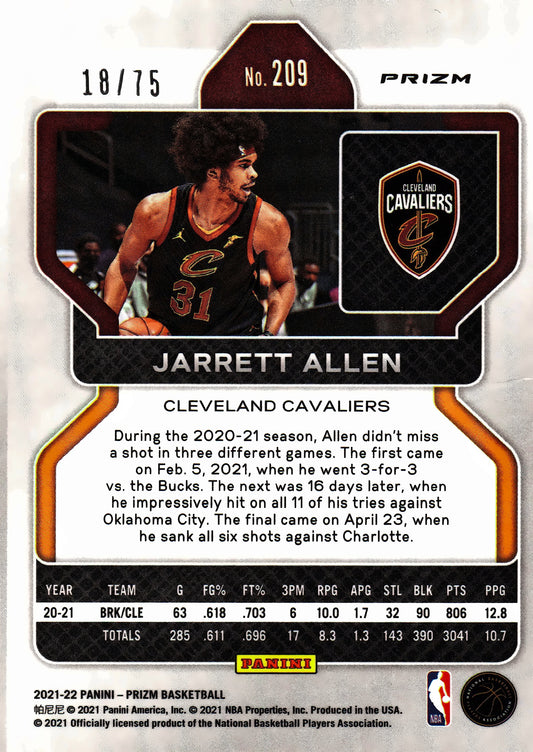 2021 Panini Prizm NBA Purple Disco /75 Jarrett Allen #209 Cleveland Cavaliers