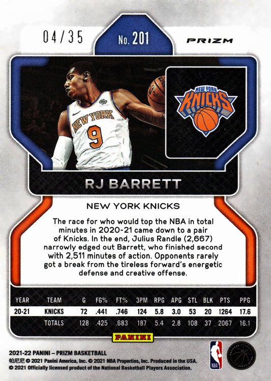2021 Panini Prizm NBA Purple Pulsar /35 RJ Barrett #201 New York Knicks