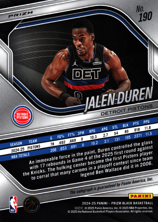 2024 Panini Prizm Black Jalen Duren autograph #190 Detroit Pistons