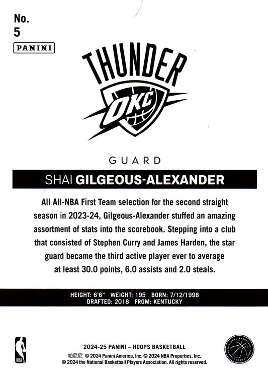 2024 Panini NBA Hoops Throwback SP Shai Gilgeous-Alexander #5 Oklahoma City Thunder