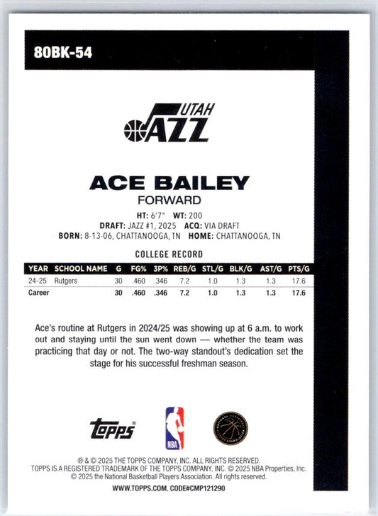2025 Topps NBA 1980-81 Topps Basketball Ace Bailey 80BK-54 Utah Jazz