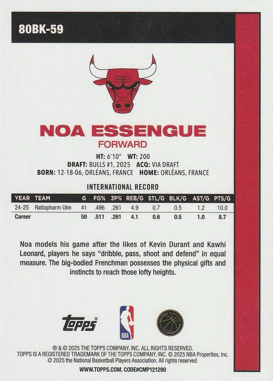 2025 Topps NBA 1980-81 Topps Basketball Noa Essengue 80BK-59 Chicago Bulls