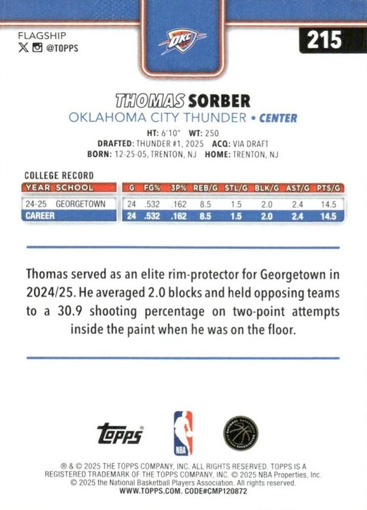 2025 Topps NBA Thomas Sorber RC #215 Oklahoma City Thunder