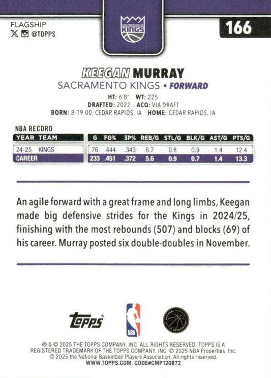 2025 Topps NBA Keegan Murray #166 Sacramento Kings