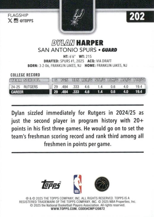 2025 Topps NBA Dylan Harper RC #202 San Antonio Spurs