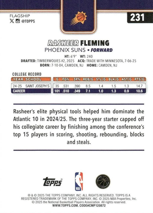 2025 Topps NBA Rasheer Fleming RC #231 Phoenix Suns