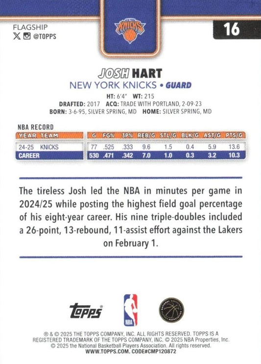 2025 Topps NBA Josh Hart #16 New York Knicks