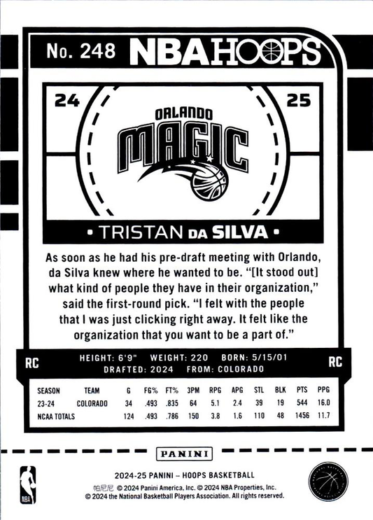 2024 Panini Hoops Tristan da Silva RC #248 Orlando Magic