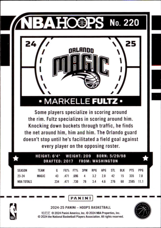 2024 Panini Hoops Markelle Fultz #220 Orlando Magic