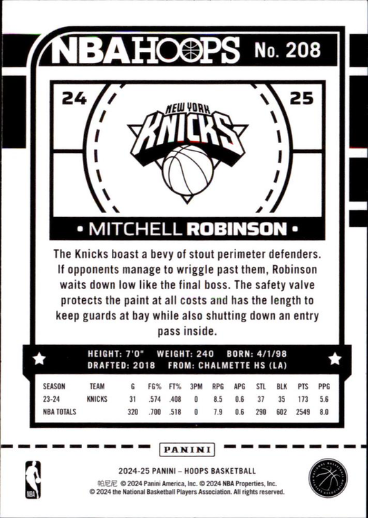 2024 Panini Hoops Mitchell Robinson #208 New York Knicks