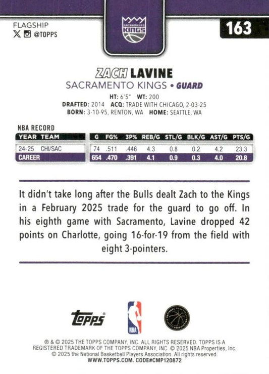 2025 Topps NBA Zach LaVine #163 Sacramento Kings