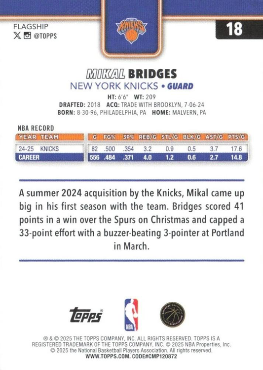 2025 Topps NBA Mikal Bridges #18 New York Knicks