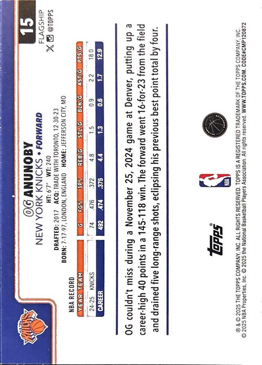 2025 Topps NBA OG Anunoby #15 New York Knicks