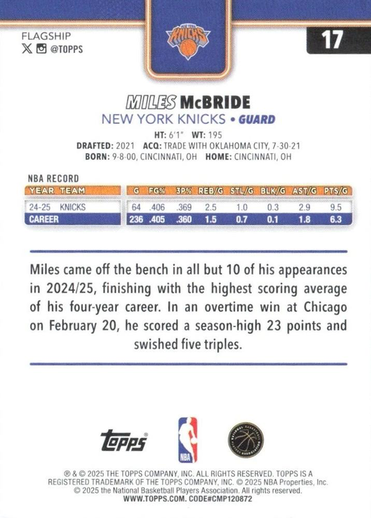 2025 Topps NBA Miles McBride #17 New York Knicks
