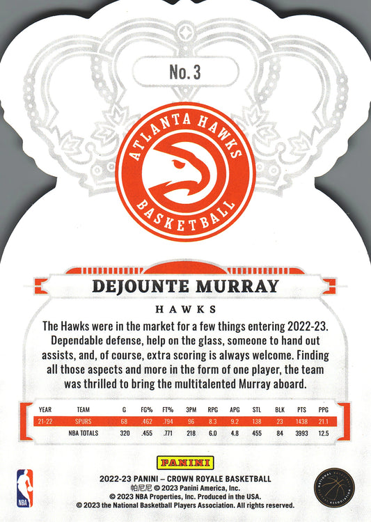 2022 Panini Crown Royale Dejounte Murray #3 Atlanta Hawks