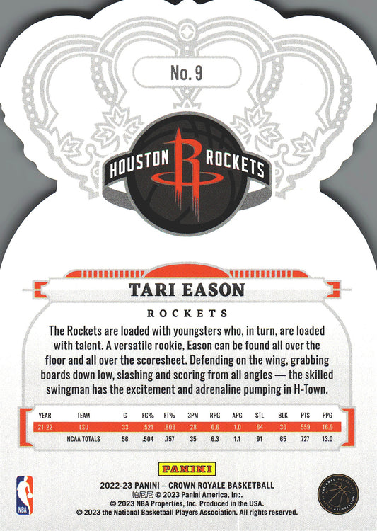 2022 Panini Crown Royale Tari Eason RC #9 Houston Rockets