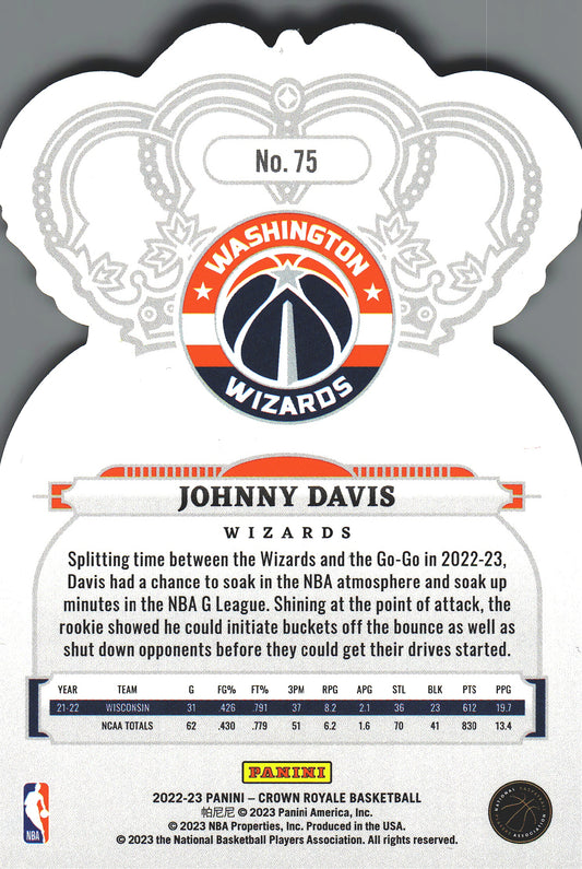 2022 Panini Crown Royale Johnny Davis RC #75 Washington Wizards