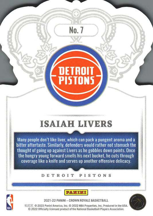 2021 Panini Crown Royale Isaiah Livers RC #7 Detroit Pistons