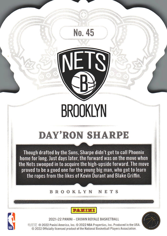 2021 Panini Crown Royale Day'Ron Sharpe RC #45 Brooklyn Nets