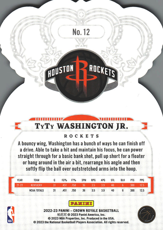 2022 Panini Crown Royale TyTy Washington Jr. RC #12 Houston Rockets