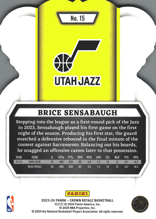 2023 Panini Crown Royale Brice Sensabaugh RC #15 Utah Jazz