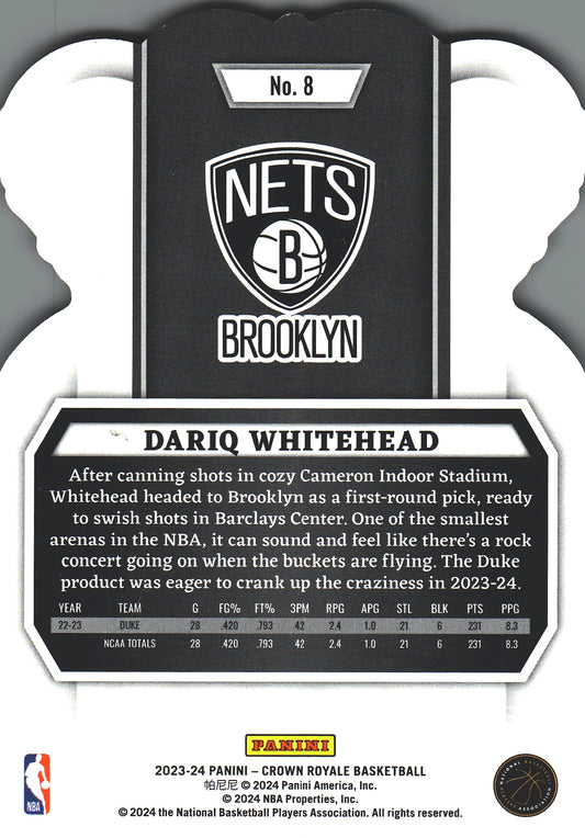 2023 Panini Crown Royale Crystal Dariq Whitehead RC #8 Brooklyn Nets