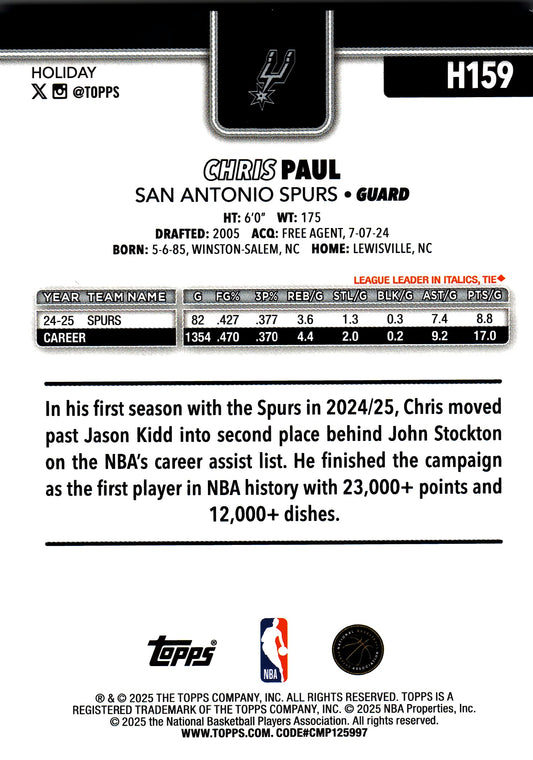 2025 Topps Holiday Light Blue and White Glitter Chris Paul #H159 San Antonio Spurs
