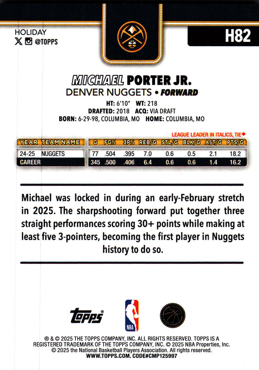 2025 Topps Holiday Glitter Michael Porter Jr. #H82 Denver Nuggets